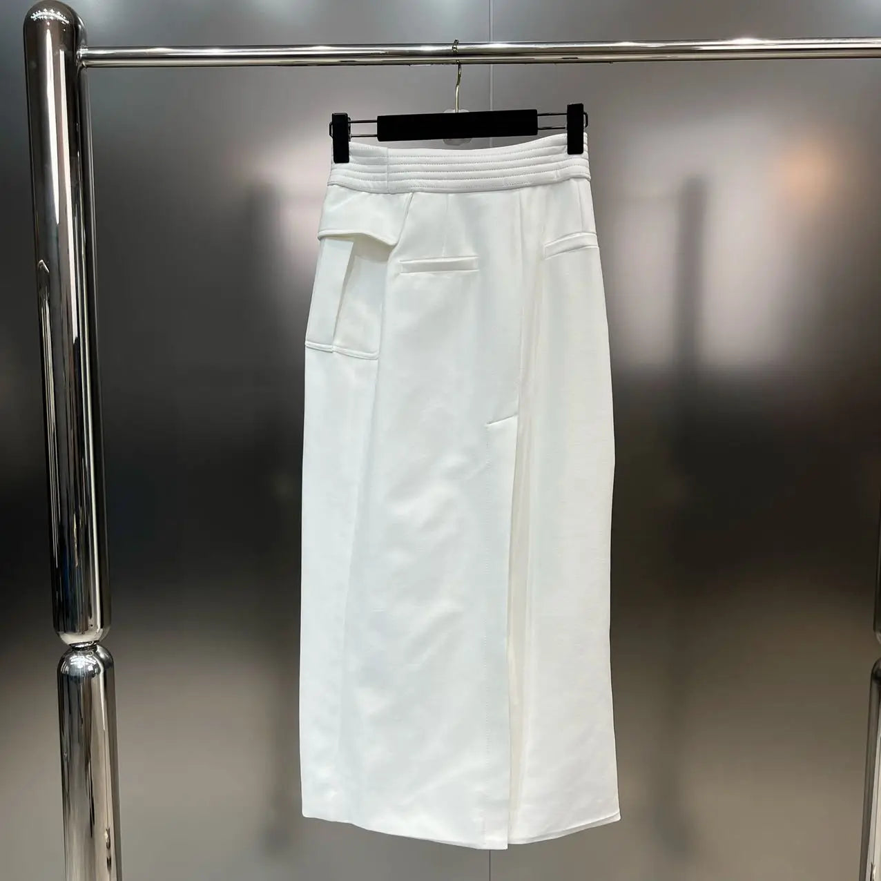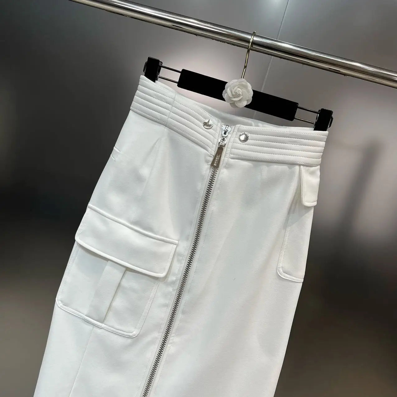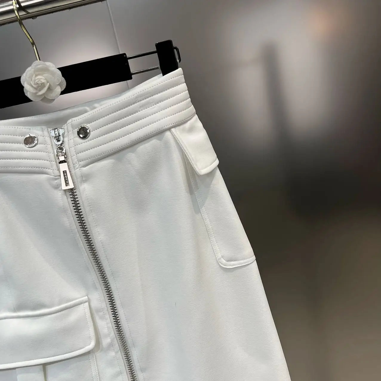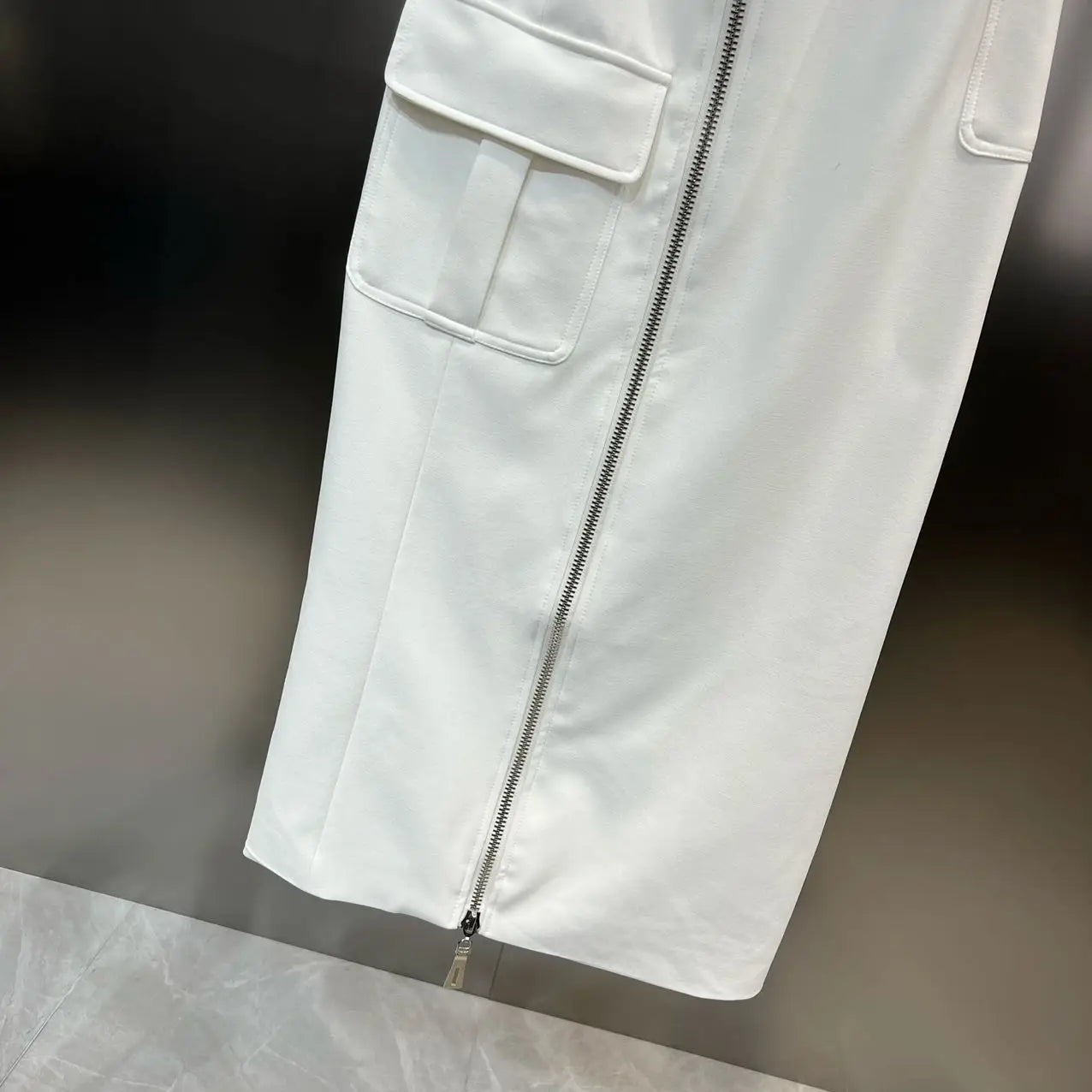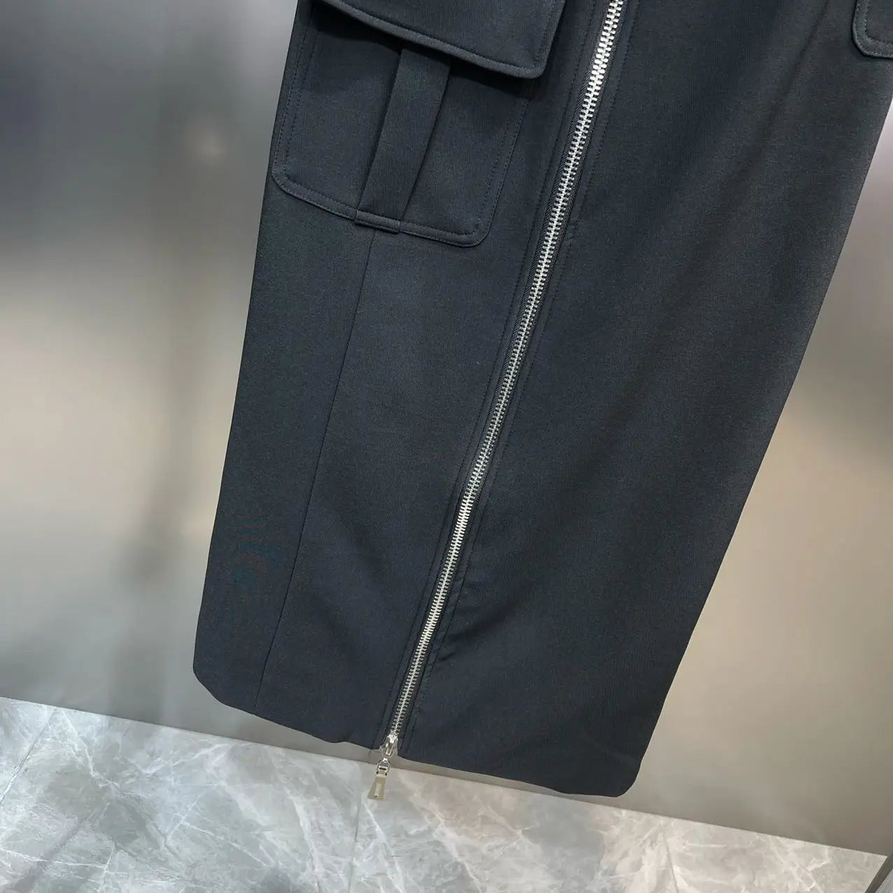 The Mid-Calf Cargo Skirt elevates traditional utility — clean lines, deep flap pockets, high-quality zippers, and a straight silhouette that lengthens the frame.
